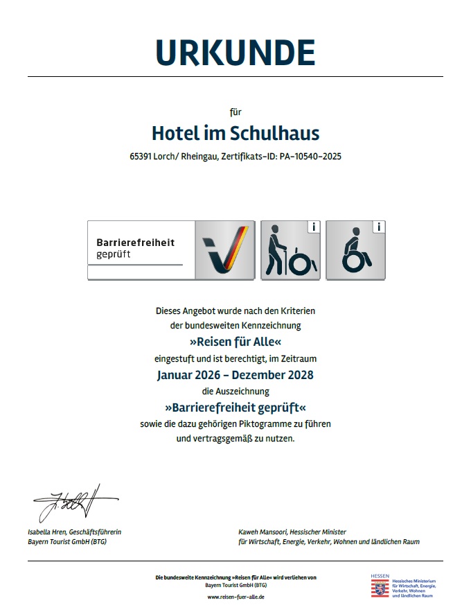 Unser Hotel Im Schulhaus in Lorch im Rheingau ist barrierefrei und macht "Reisen für Alle" möglich!
